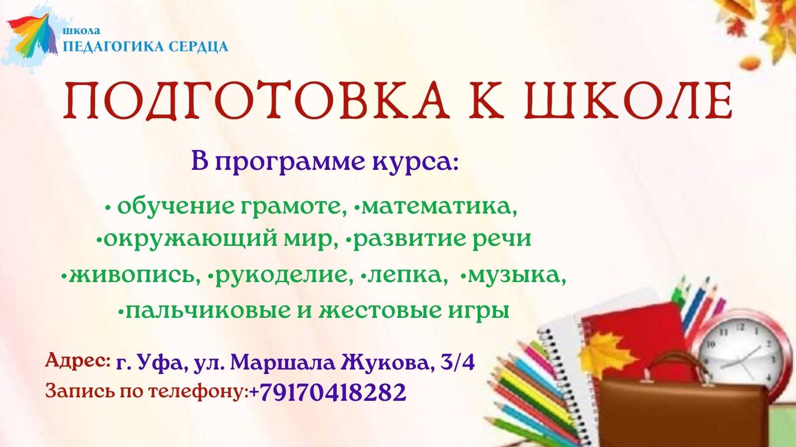 Присоединяйтесь к "Педагогике сердца" и позвольте вашему ребенку сделать первые шаги в мире знаний и творчества вместе с нами! Запись уже открыта, количество мест ограничено. Не упустите возможность подарить вашему малышу чудесный старт в большой школьной жизни!